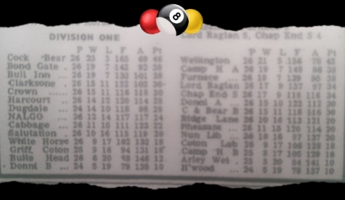 With the success off of the first season and pool steadily becoming more popular in pubs and clubs the league where optimistic on expanding from 17 teams when the new season started. Team's were asked to register by February 26th, the registration fee was increased to £5 but £2 was refunded on completion of fixtures, player registration remained at 10p per player. So on April 1st, 26 teams broke off the new league, 12 sides made up Division One with 14 going in Division 2. Only 9 sides from the inaugural season remained with holders Cock & Bear hoping to retain the title while the Salutation were hoping to go one better. Newcomers included the soon to be legendary Wellington plus The Donnithorne and Camphill WMC.